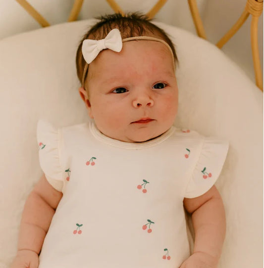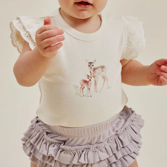 Aster and Oak Tencel Denim Ruffle Playsuit Cherry