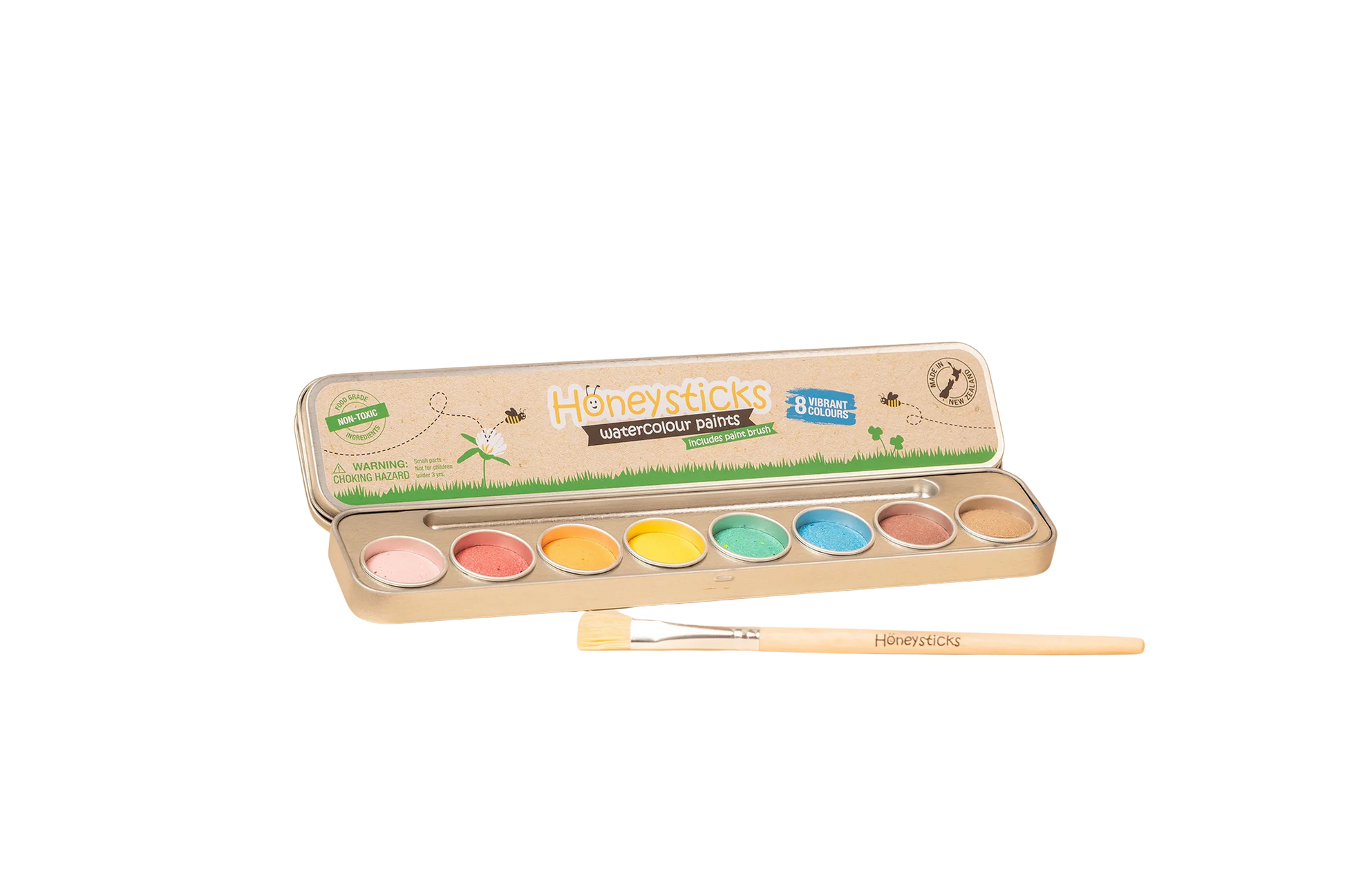 - Perfect eco-friendly gift set: Beautifully packaged in a recyclable metal tin, Honeysticks Watercolour Paint Set will make a thoughtful gift for the little artist in your life (ages 3+).